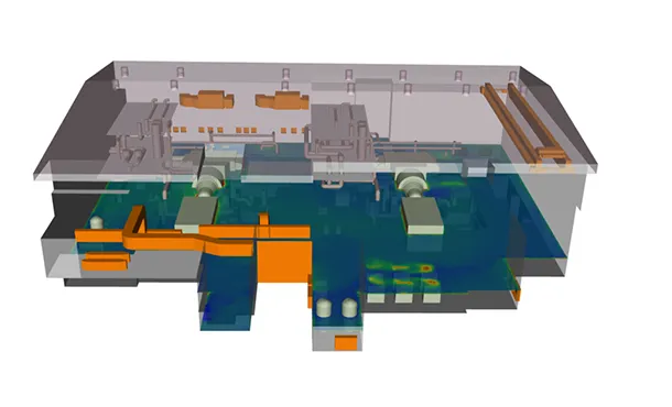 Simtec assessed the cooling and ventilation of two steam turbines at a power plant in Cyprus, focusing on the challenges posed by hot summers. Using Fluent's solar load model, the study simulated the worst-case thermal loads. The HVAC system's performance was evaluated, identifying temperature hot spots and areas of stagnant air. The results confirmed effective cooling without noise hazards, helping engineers avoid the need for additional fans, thus reducing costs.- Date