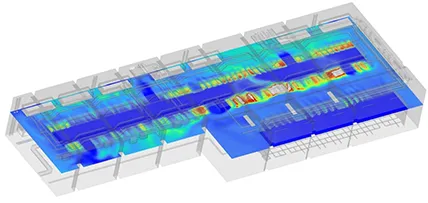 Simtec conducted a comprehensive cooling study for two Data Centers located in the Attica region, utilizing Computational Fluid Dynamics (CFD) simulations. The study included both the analysis of external heat flow from the air conditioning units and the simulation of the internal spaces.