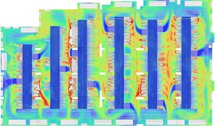 These simulations offered valuable observations regarding cooling challenges and hot spots both inside and outside the Data Centers. Identifying areas with temperatures above optimal thresholds contributed to a more efficient thermal design for a large-scale and demanding project.