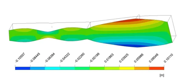 Existing air – pulverized coal mixture burning channels at boiler A1 in the TPP Nikola Tesla in Obrenovac are of the rectangular, downstream variable cross section, with overall dimension of 4m length, 1.2m wide and 0.26m (inlet) to 0.535m (outlet) height. The thickness of this thin walled stainless steel structure, rigidly supported (welded) in the inlet, outlet and the first cross section of height changes, is 10mm.