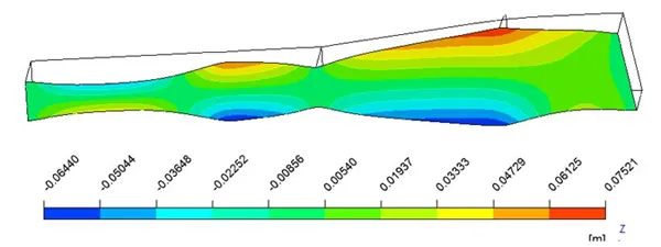 The results of the coupled flow-thermal-structural parametric study of the coal mixture channel for the range 300…700oC of the inlet mixture temperature and 10…300oC in the channel’s inner and outer wall temperatures difference (depending on the insulation of the channel) shows that channel complex geometry will deform in couple different shapes, depending on the level of the inlet air coal mixture temperature and supposed insulation of the channel. Accordingly, the deformation and stresses field distribution in the channel wall, flow field and pressure drop in the channel depends of these two parameters.