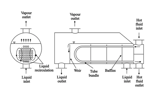 Shell and tube heat exchangers are among the most widely used types of heat exchangers. Various shell and tube heat exchangers are designed for vapour generation on the shell side. They are widely applied in chemical, process and energy power industry, in refrigeration and air-conditioning equipments, and they are applied such as reboilers, steam generators and evaporators.